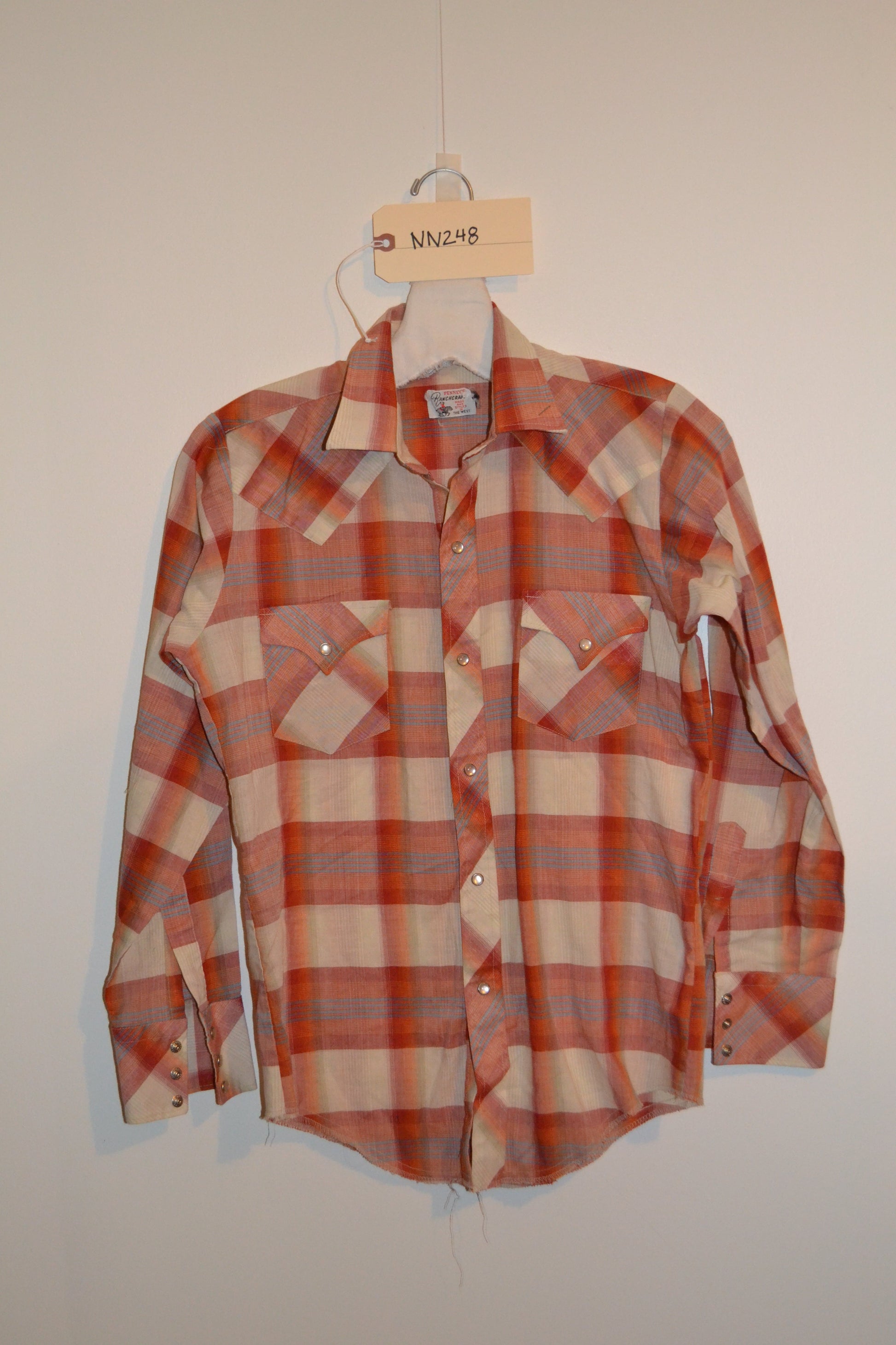1960's Ranchcraft Western Shirt. This Orange and Red Plaid shirt with classic Western Shirt style details.