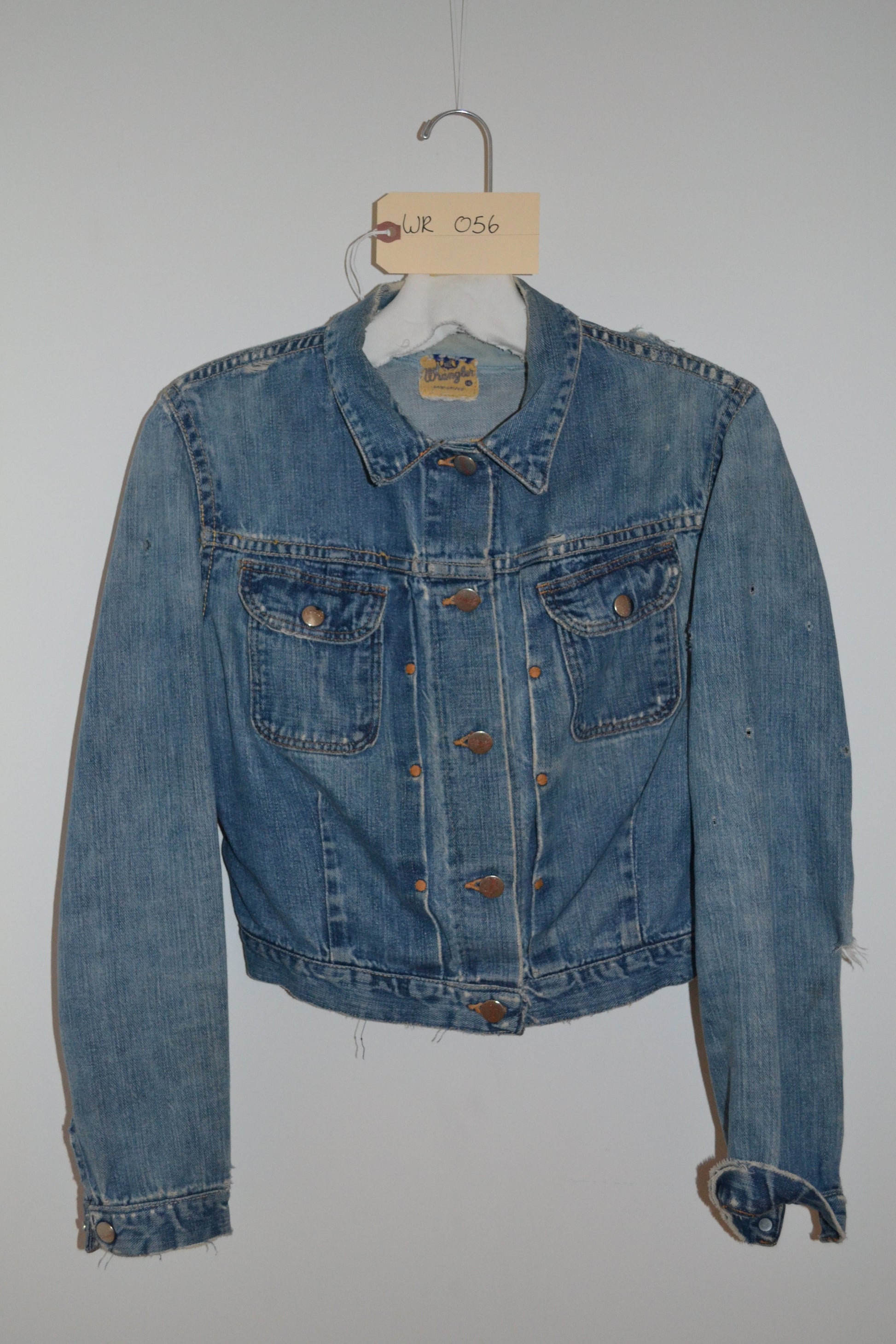 1950's Wrangler Jacket. This Womens Red Selvage Left Hand twill denim jacket has amazing details including single pleated and darted front, great wear, abrasion, distressing, fade and holes.