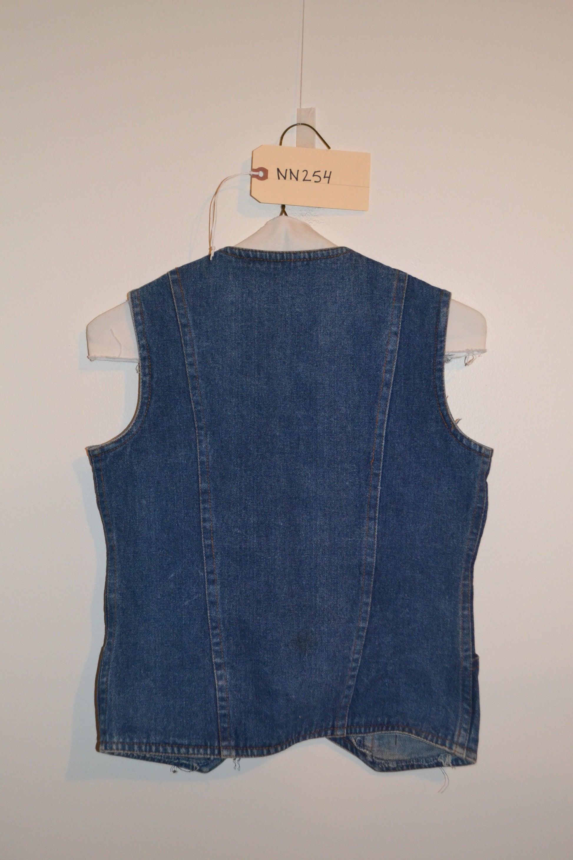1970's Fashion Denim Vest. This broken twill denim vest has cute pocket and lapel detail.