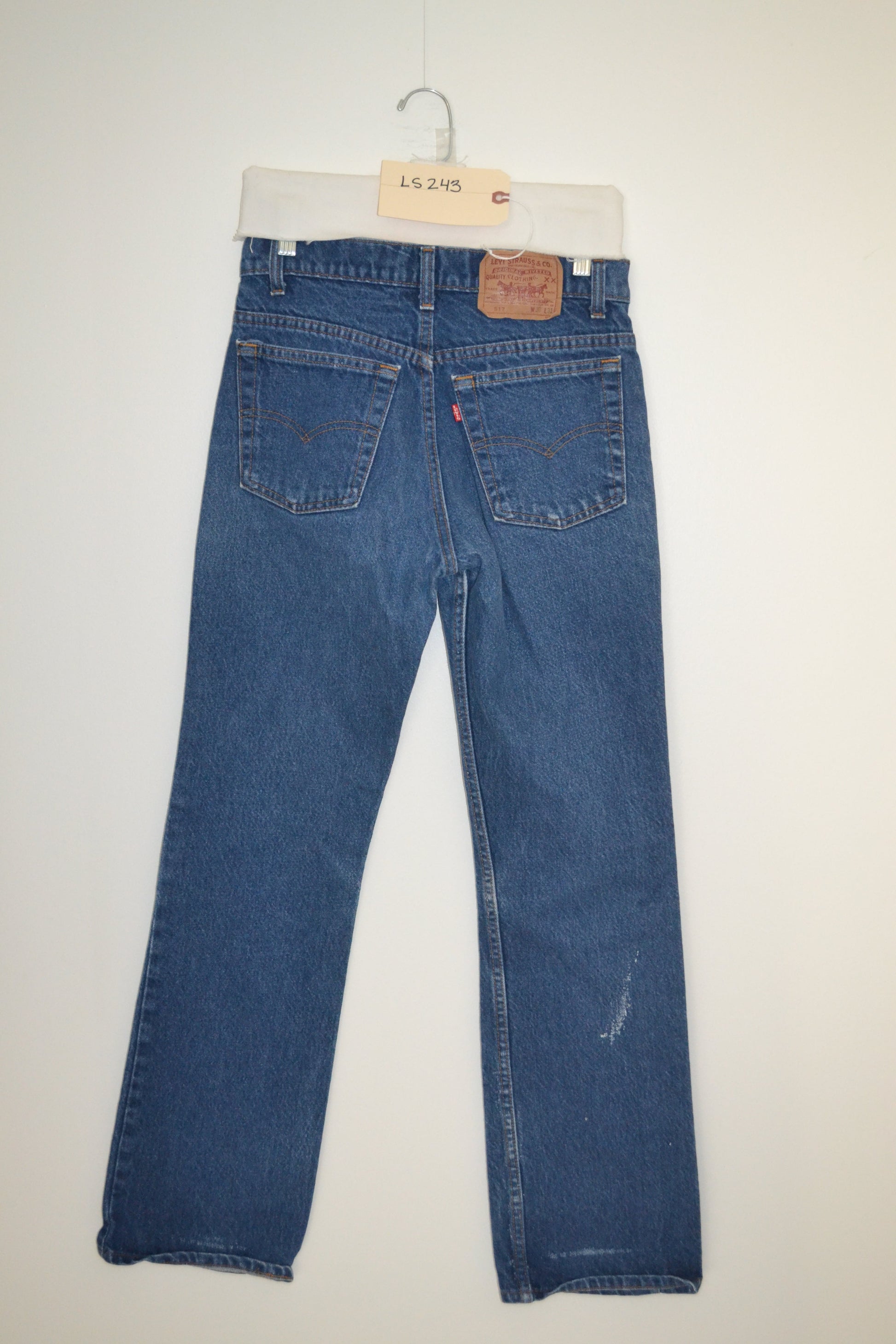 1970's Vintage Little E Levi's 517 Jean. This medium blue is a great clean indigo shade and has a great vintage stonewash look with minimal wear marks, subtle fade and allover marbling.