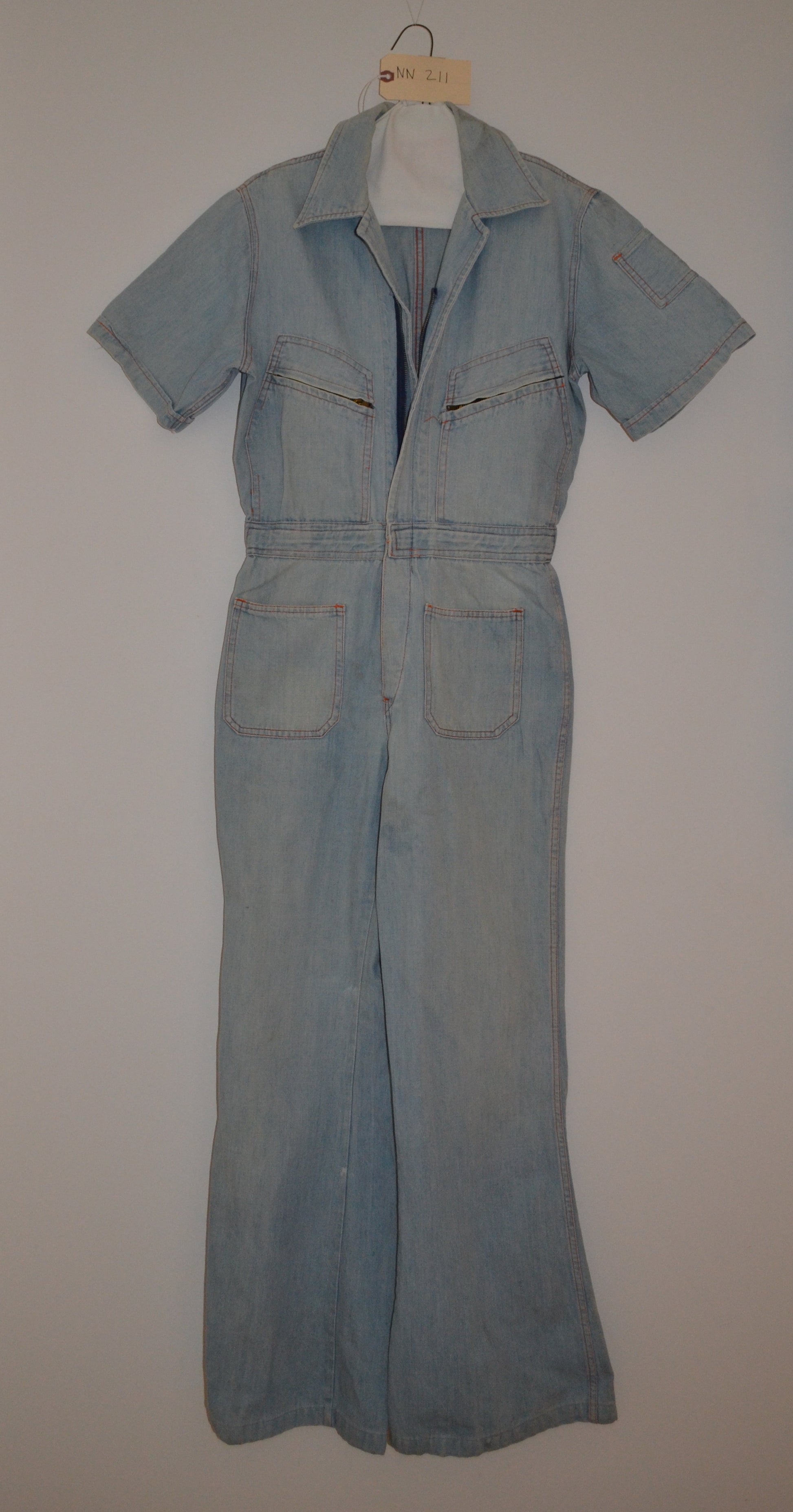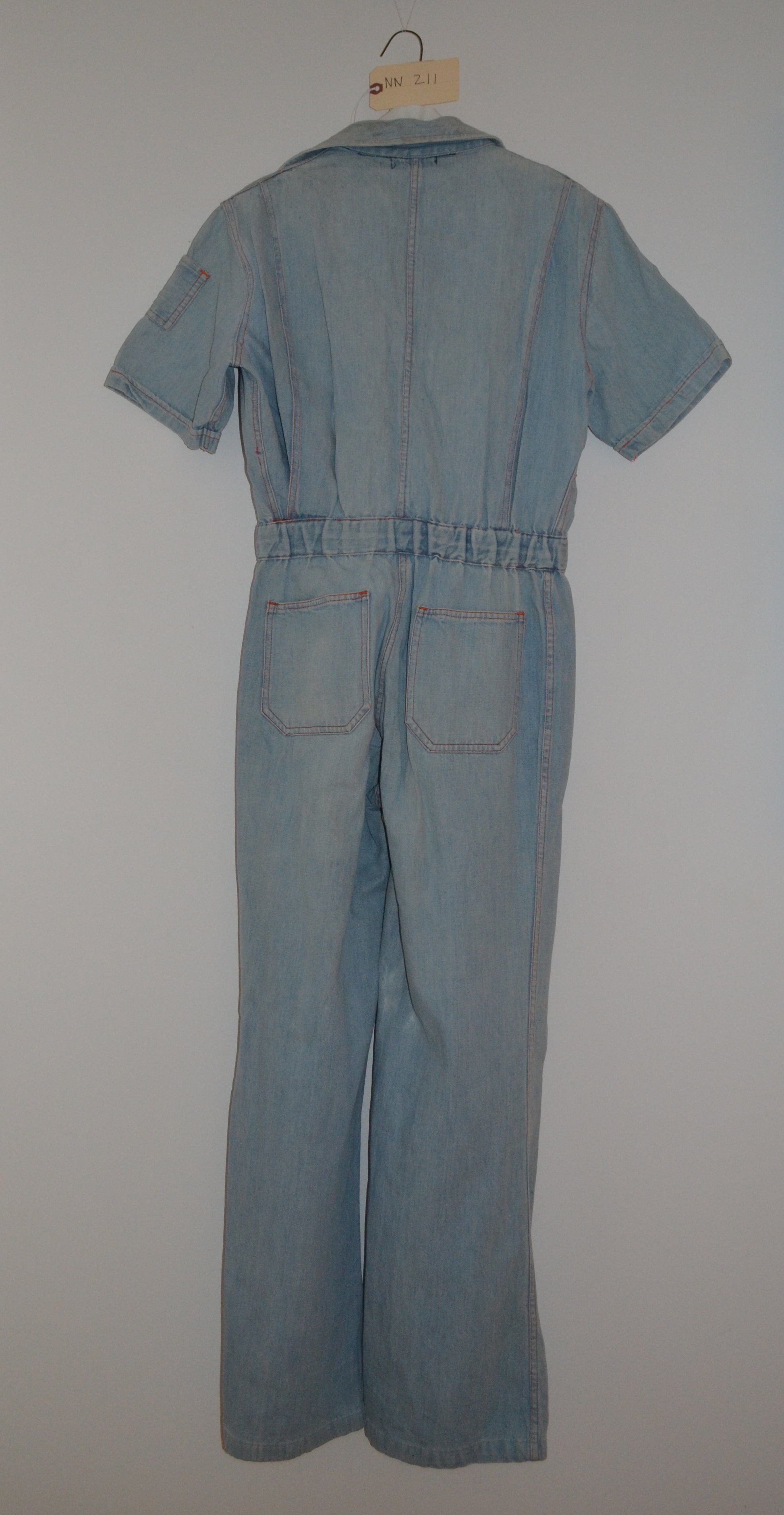 1980's Fashion Denim Jumpsuit. This super bleached out zip front Small jumpsuit has cute multi pocket details, and a cynched waist.