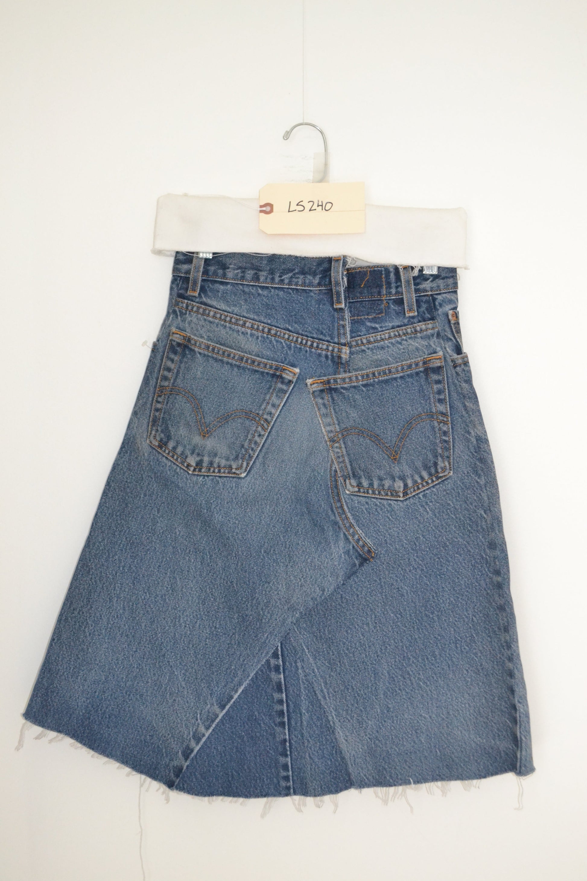 2000's Upcycled 1980's original jean remade into an asymmetrical design skirt.